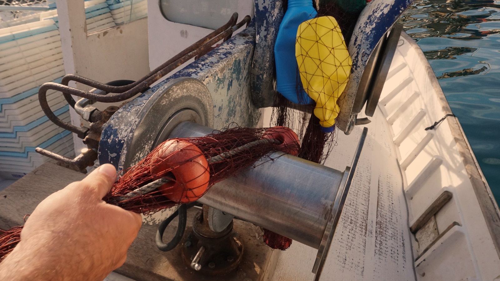 낚아 올린 플라스틱 병이 살아있는 것처럼 움직이는 표현이 재미있다.