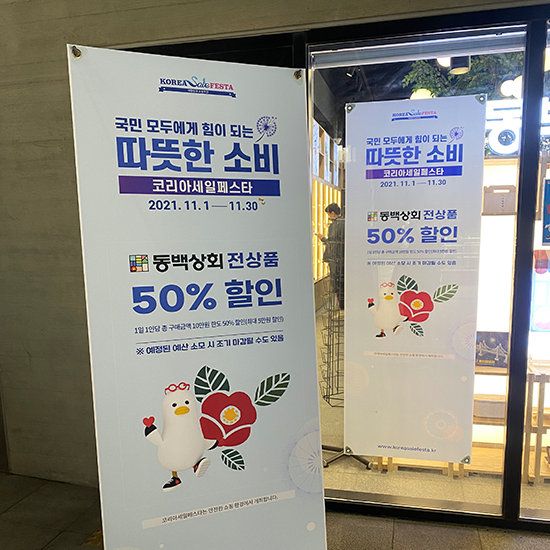 역 앞 동백상회 50% 할인 프로모션 중