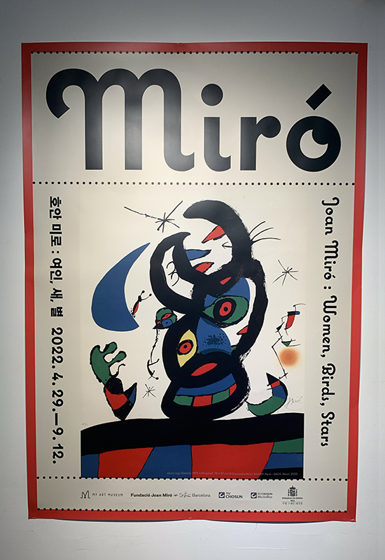 〈호안 미로 : 여인, 새, 별〉은 그의 작품 활동 후반기 40년에 걸쳐 집성화된 예술적 모티프와 뚜렷한 화풍의 발전 양상을 잘 보여준다. 전시는 바르셀로나 호안 미로 미술관과 공동 주관하며, 교육 프로그램 디렉터 조르디 클라베르 (Jordi J. Clavero)가 기획하였다. 이에 호안 미로 미술관에서 엄선된 유화, 드로잉, 판화, 태피스트리, 조각 등 70여점의 오리지널 작품으로 구성되었다. 순수한 색과 제한된 회화적 요소로 상징적 언어를 표현하는 미로는 타고난 호기심과 감각으로 원대한 자유를 그려낸다. 미로는 작품의 해석을 관객에게 맡기는데 시인이 표현하면 해석은 독자의 몫이 되는 이치와 같다.