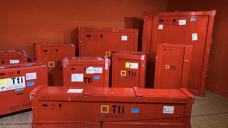 보통 작품들은 특수 상자에 그림을 꽂아 무진동 차량으로 이동한다고 한다.