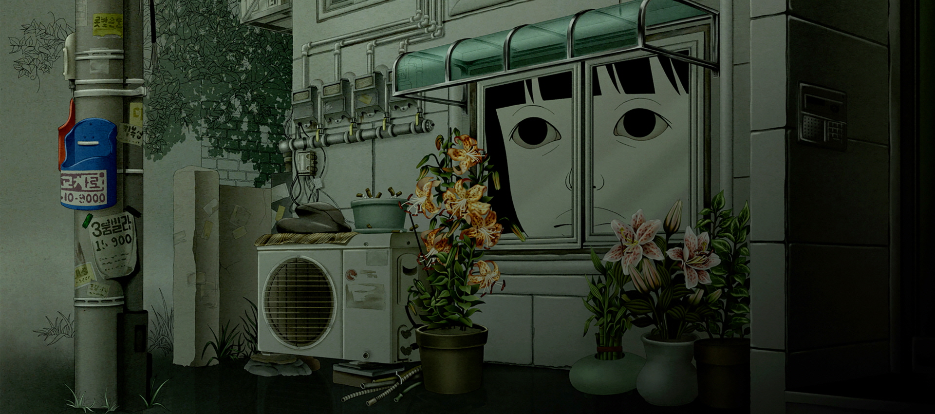 에어컨이랑 배선, 전봇대 디테일까지