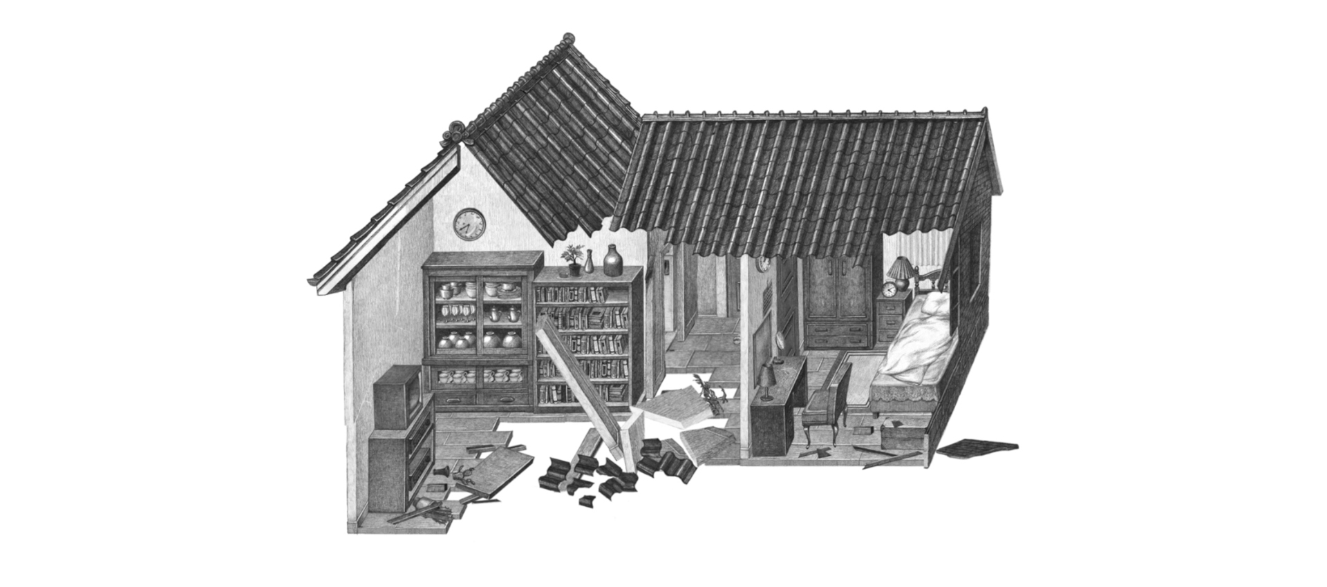 집이 점점 무너져 내리며 처음 보이는 공간은