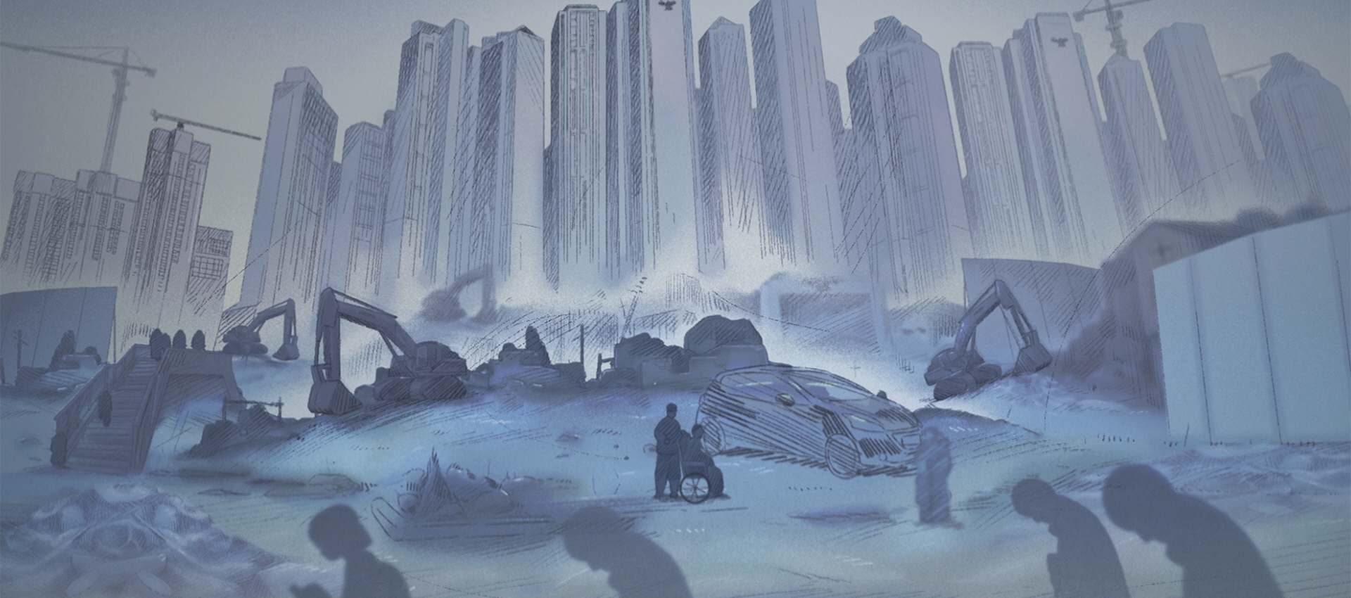 같은 곳에 있지만 다른 시간을 사는 사람들을 시계로 표현한 장면이 제일 좋았다.