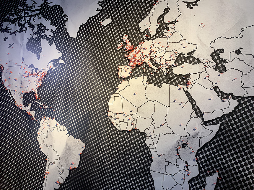 구글 어스에서 확인할 수 있도록 지붕에 작품을 설치.