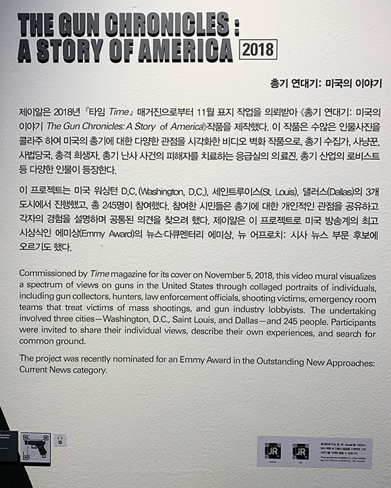 * 《제이알: 크로니클스》전은 뉴욕 브루클린 미술관 부관장 샤론 맷 앳킨스(Sharon Matt Atkins)와 사진 부문 큐레이터 드루 소여(Drew Sawyer)의 공동 기획으로 마련되었다.