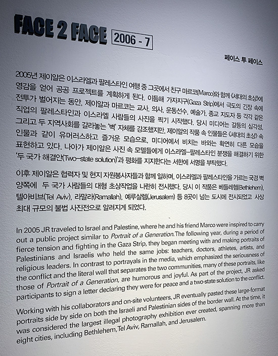 제이알은 작업에 함축된 여러 이야기들을 통해 우리가 세상을 바라보는 관점에 대한 변화를 유도한다. 사진과 페이스트업, 영상, 프로젝트 과정을 기록한 아카이브를 포함한 약 140여 점의 작품들로 구성되는 이번 《제이알: 크로니클스》 전은 국경을 넘어 작가가 전달하고자 하는 동시대의 주요 사회문제에 대한 관심과 대화를 이끌어내는 장이자, 제이알의 독창적인 예술을 경험할 수 있는 기회가 될 것이다.