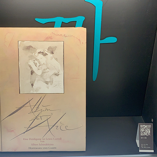 벽 쪽에 전시되어 있던 책들은 QR코드를 찍으면 책에 대한 이야기를 볼 수 있음