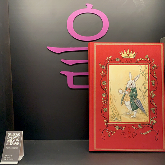 벽 쪽에 전시되어 있던 책들은 QR코드를 찍으면 책에 대한 이야기를 볼 수 있음