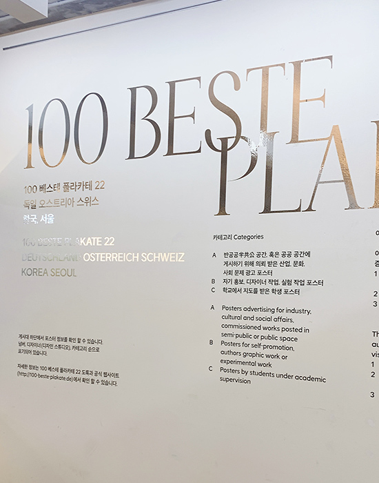 <100 베스테 플라카테>(원제: 100 beste Plakate Deutschland Österreich Schweiz) 전시는 2001년 독일, 오스트리아, 스위스에서 시작됐으며, 독일어권 내에서 제작된 참신한 디자인과 다양한 기법의 포스터 작품 100 점을 선정해 보여준다.