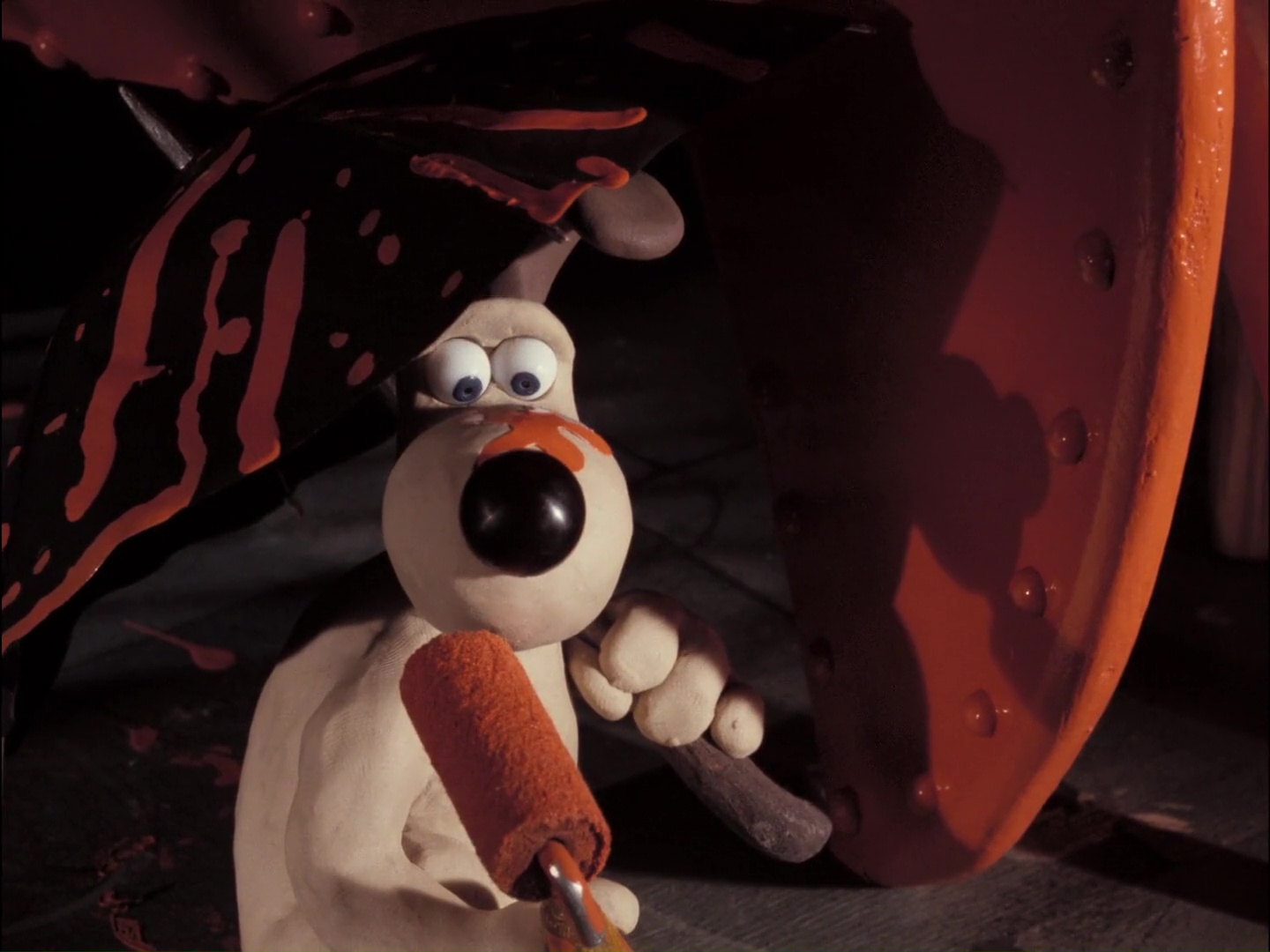 페인트 떨어져서 우산 쓰고 작업하는 데 결국 그로밋 얼굴에 떨어졌다 귀여워 ㅋㅋㅋ