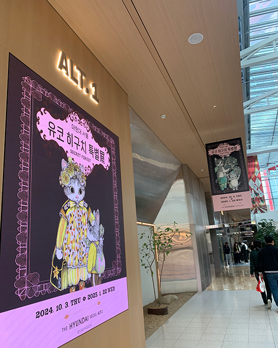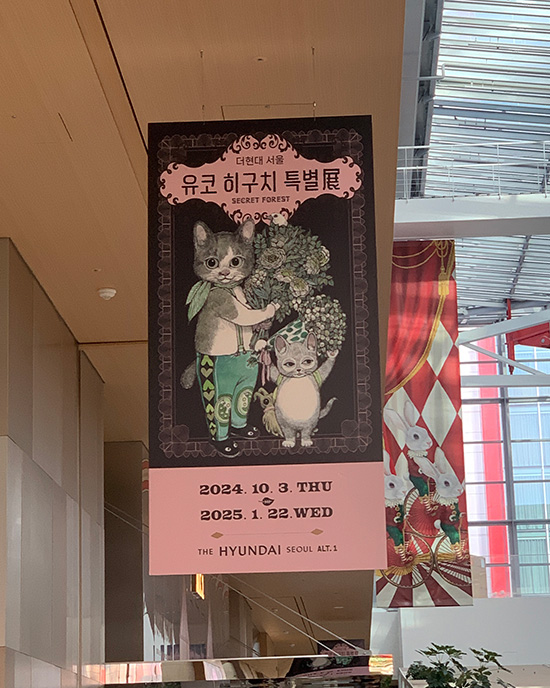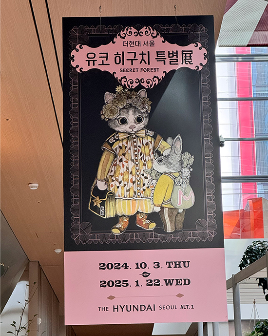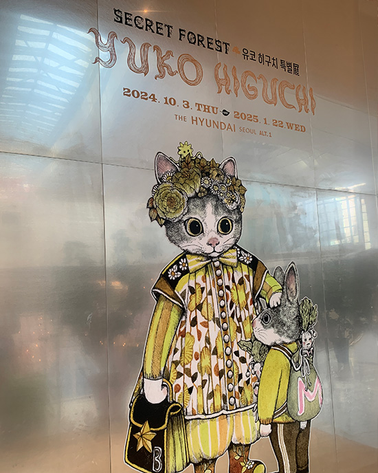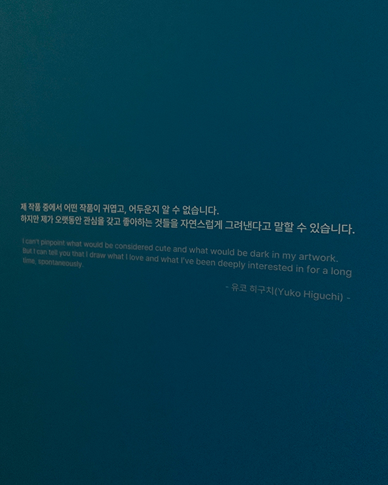 '유코 히구치 특별전: 비밀의 숲'은 한국에서 열리는 유코 히구치의 첫 번째 전시회입니다. 이미 일본에서 10회의 성공적 투어 전시를 마친 'Circus' 전시의 후속편인 이번 전시는, 거대한 숲과 같은 작가의 무한한 상상력과 판타지가 가득 담긴 작품 세계를 한국 관람객들에게 선보이는 자리입니다. 작가가 직접 엄선한 오리지널 작품, 그림책 드로잉, 포스터 디자인, 컬래버레이션 작품 외에도 여러 작가와 함께 만든 인형, 미니북, 의상과 같은 오브제를 포함한 1000여 점을 감상하실 수 있습니다. '비밀의 숲'이라는 주제에 맞춰 작가가 새롭게 그린 한국 한정 다섯 작품과 함께 귀엽지만 때로는 섬뜩한 비밀스러운 세계로 여러분들을 초대합니다.